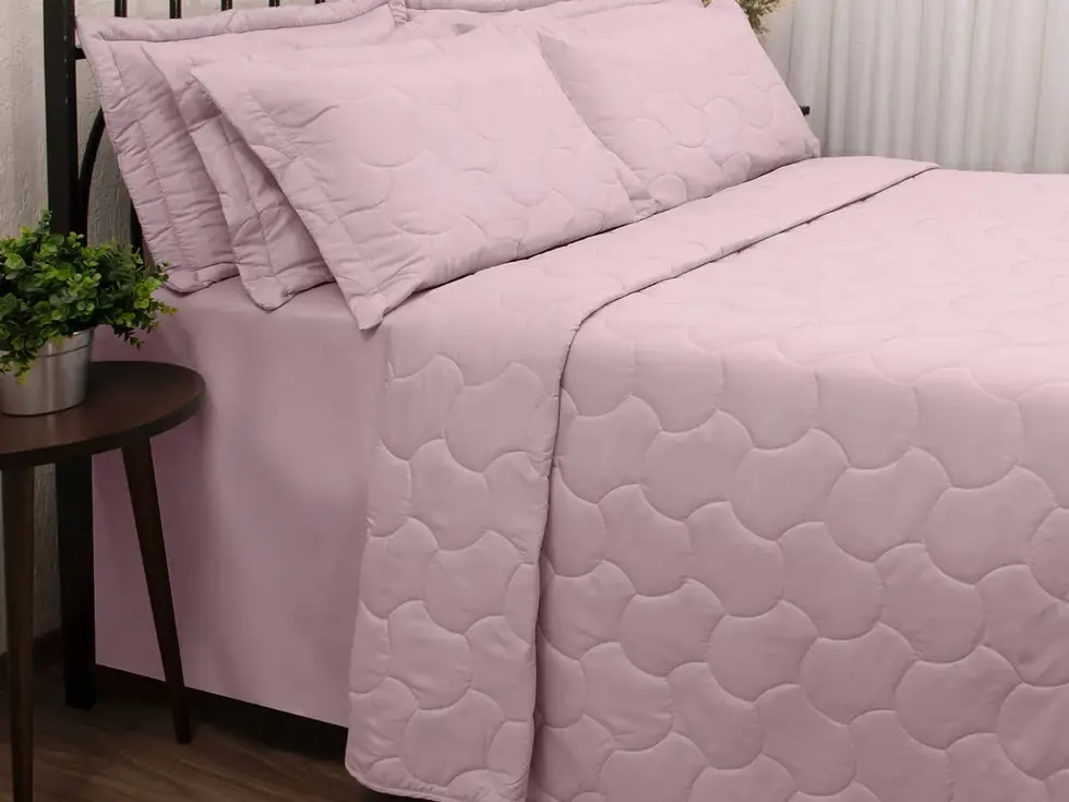 Cobreleito/Porta Travesseiro Solteiro Sonata Rosa 2pc